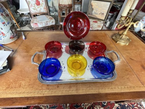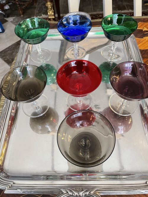 Murano: Suite de 7 Coupes( 1grande et 6 normales) à fruits/glaces/cremes aux 4 couleurs