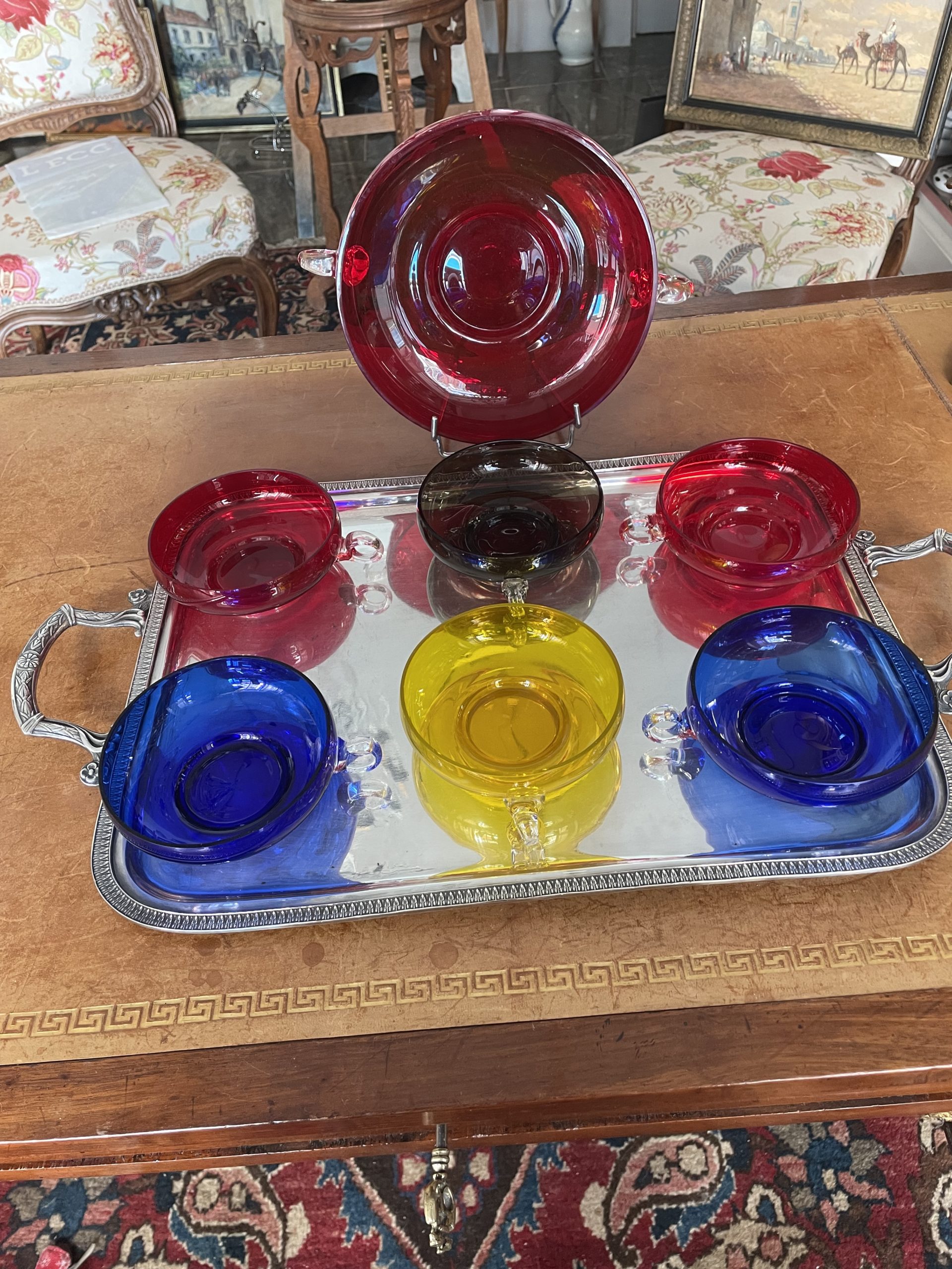 Murano: Suite de 7 Coupes( 1grande et 6 normales) à fruits/glaces/cremes aux 4 couleurs