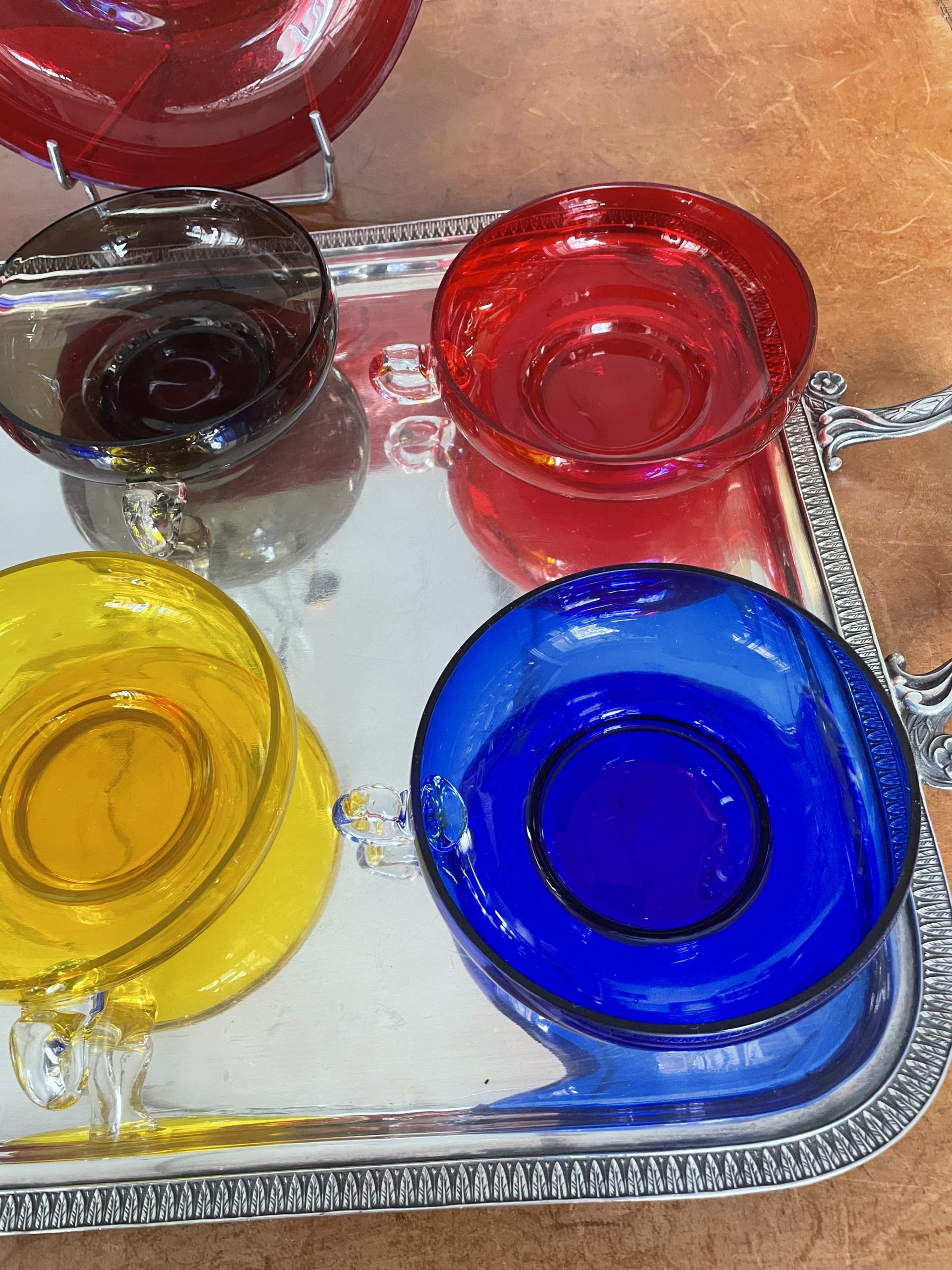 1 grande coupe, 2 bleues,2rouges 1 jaune,1 violette